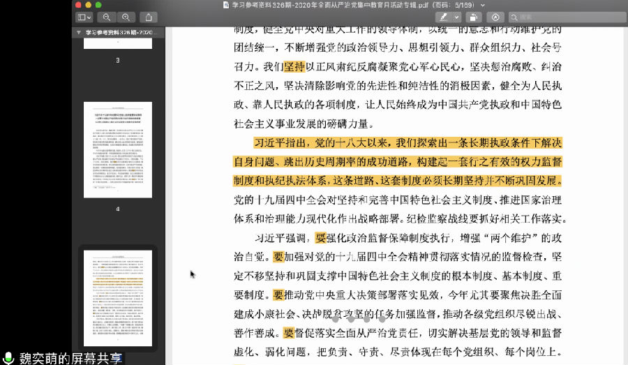 社科博182宣传委员、社会学系魏奕萌同学带领支部成员集体学习了习近平总书记有关从严治党的重要讲话。党的十八大以来,我们探索出一条长期执政条件下解决自身问题、跳出历史周期率的成功道路,构建起一套行之有效的权力监督制度和执纪执法体系,这条道路、这套制度必须长期坚持并不断巩固发展。习近平总书记强调,要强化政治监督保障制度执行,增强“两个维护”的政治自觉。要坚持以人民为中心的工作导向,以优良作风决胜全面建成小康社会、决战脱贫攻坚。要深刻把握党风廉政建设规律,一体推进不敢腐、不能腐、不想腐。