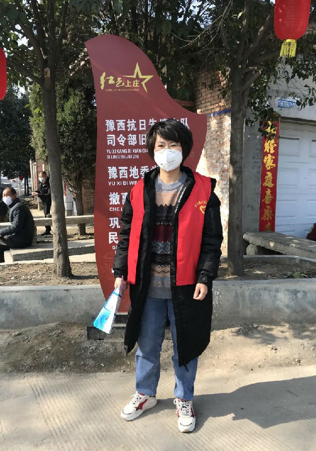 丁安琪家乡在河南省郑州市巩义市,返乡隔离期满后,她穿上红马甲,成为了村里的一名疫情防控志愿者。
