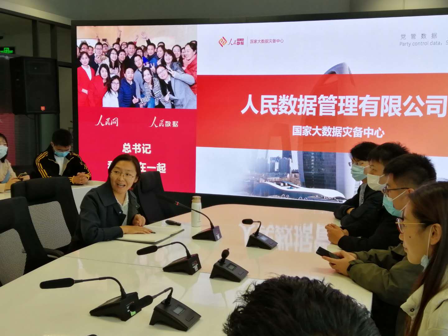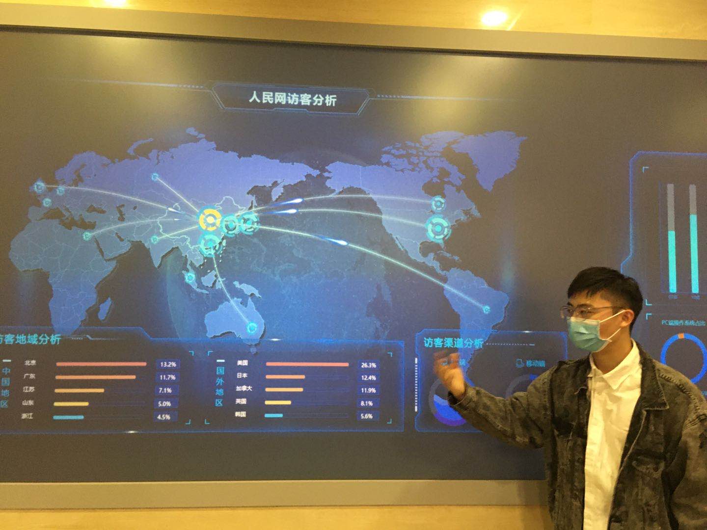 工作人员介绍人民网大数据展示屏