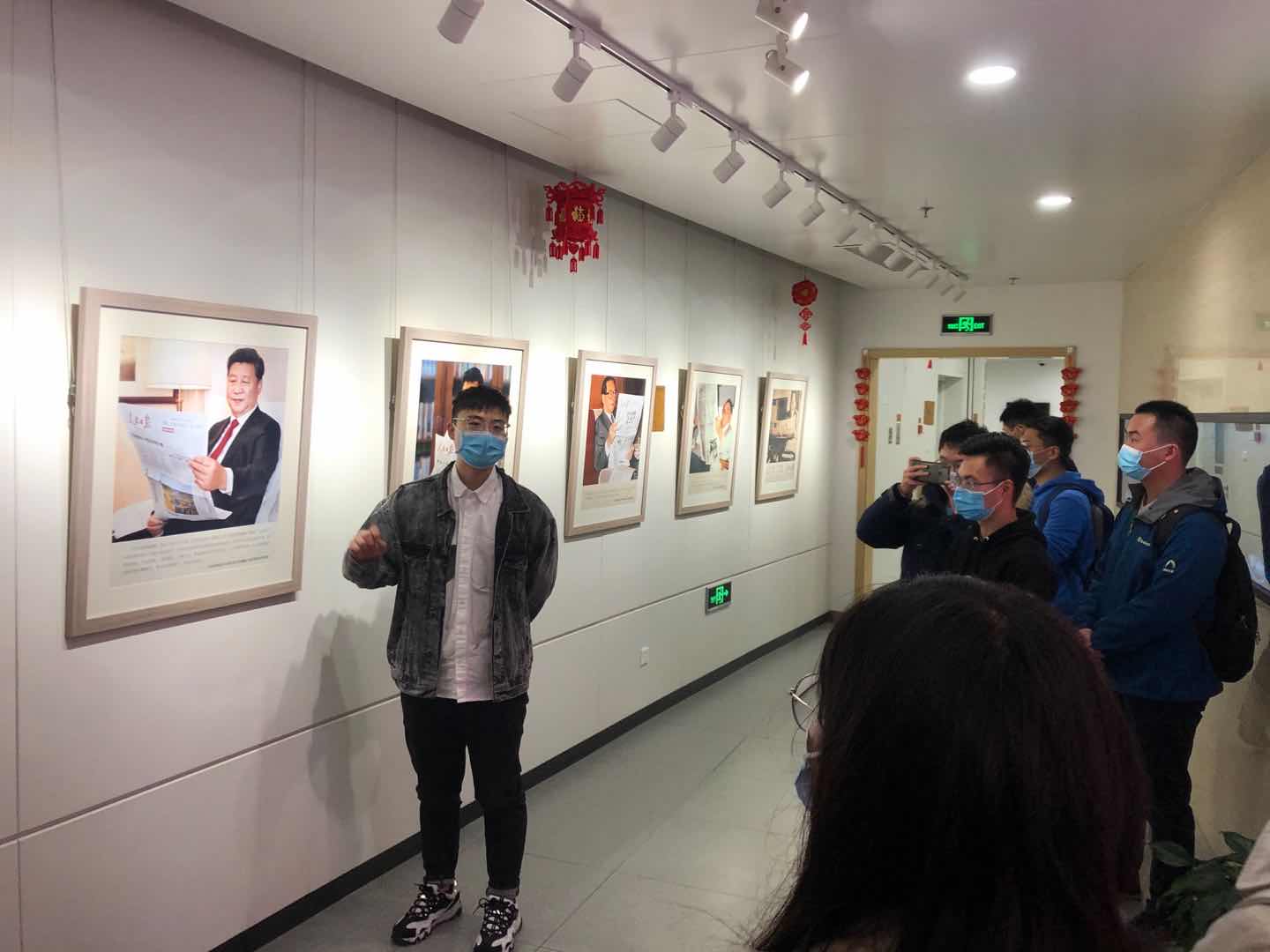同学们沿着习近平总书记在人民网考察观摩的路线参观,映入眼帘的首先是“总书记和我们在一起”照片展示屏,接着是共和国历代领导人阅读《人民日报》的照片,其中展示了毛主席提名“人民日报”文字的曲折过程。通过人民日报创办人民网的简史介绍,同学们对人民网的发展历程有了直观的了解,并在员工照片墙前细细品读了员工与习总书记合影的小故事。