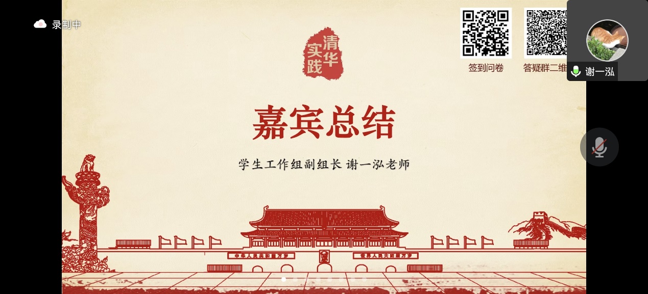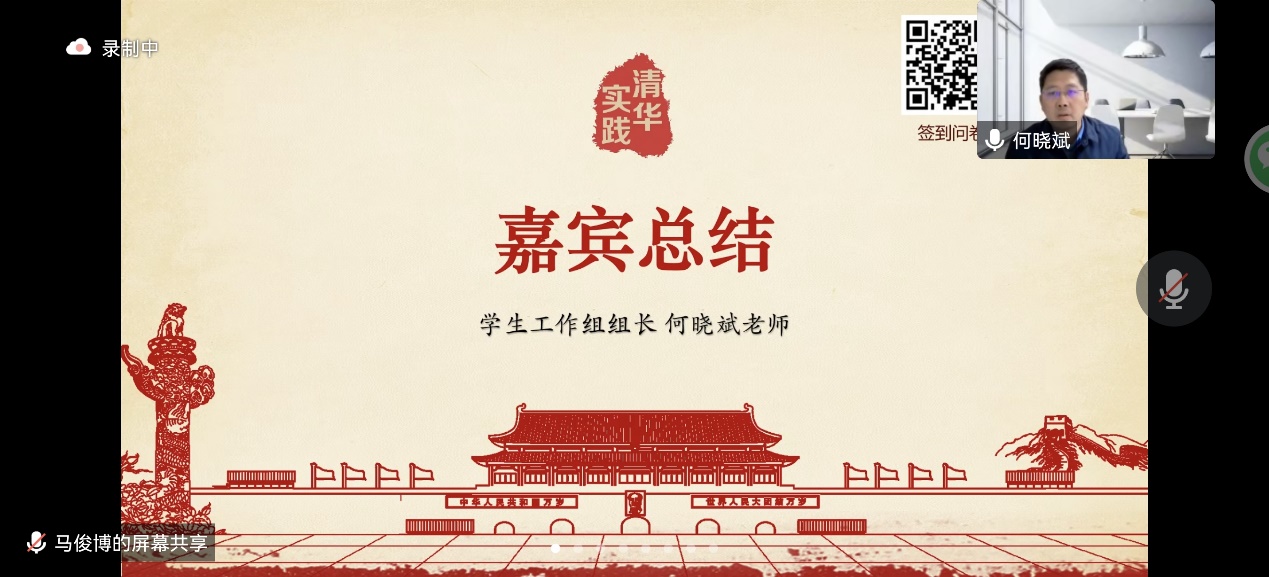 何晓斌对本次动员会进行总结发言。何晓斌对于动员会上分享案例的多样性、深入性进行了高度赞扬,并总结了当今疫情给社会实践带来的挑战和困难。他鼓励社科学子与实践地的民众、政府官员、企业员工等各个社会群体接触,了解真实社会,并鼓励大家充分利用清华的资源,了解当地的风土人情,对于中国社会的现象或者问题进行深刻的反思,将社会实践主题与国家发展紧密结合,从而加深对于党的方针政策的理解。希望面临专业分流的二字班同学们通过社会实践活动的契机,与不同专业同学进行交流,增强自身的专业认知和实践能力。