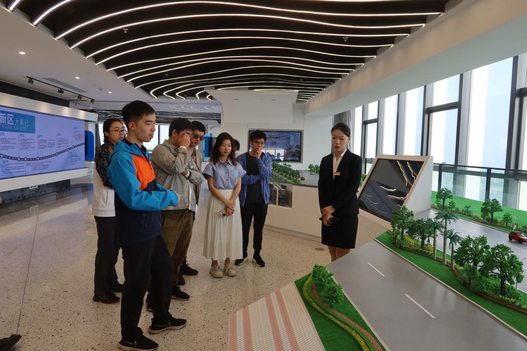 实践支队在中山翠亨新区规划展览馆,观看了全景沙盘和规划展板,了解翠亨新区建设遵循“文化引领、生态优先、产城融合、智慧创新、和谐善治”的发展理念。