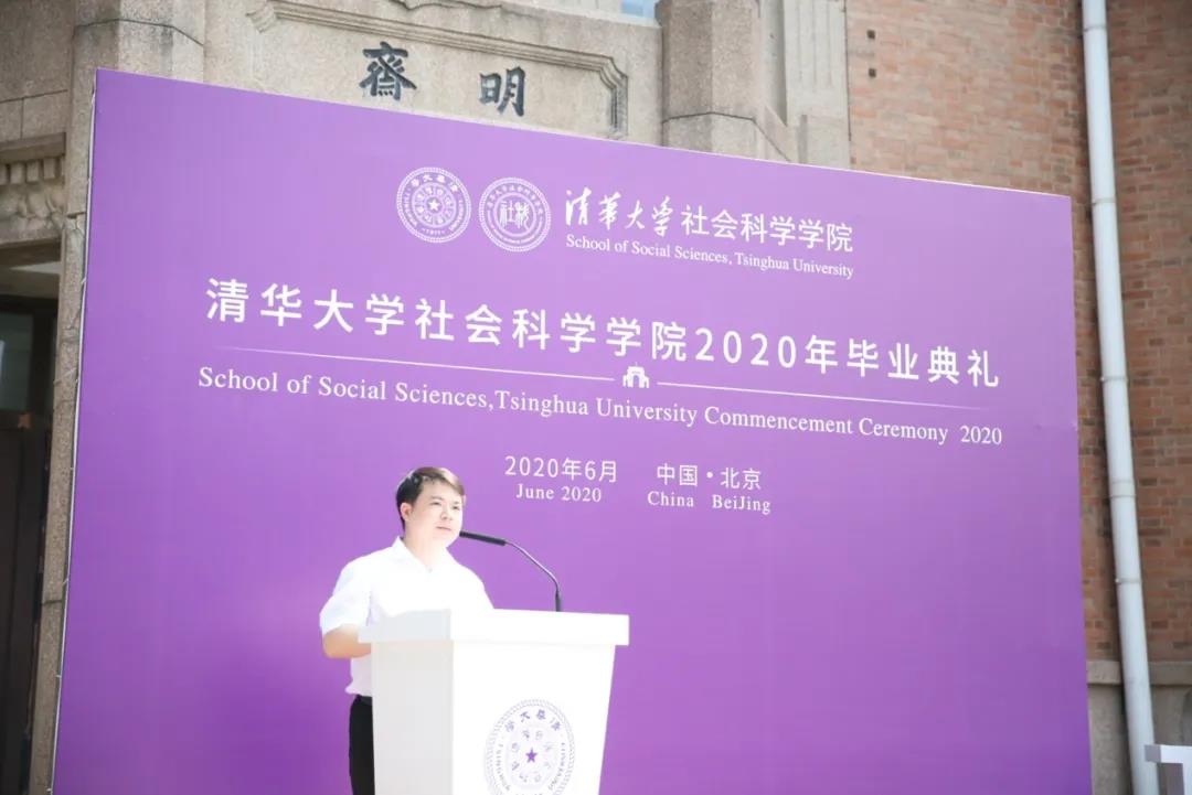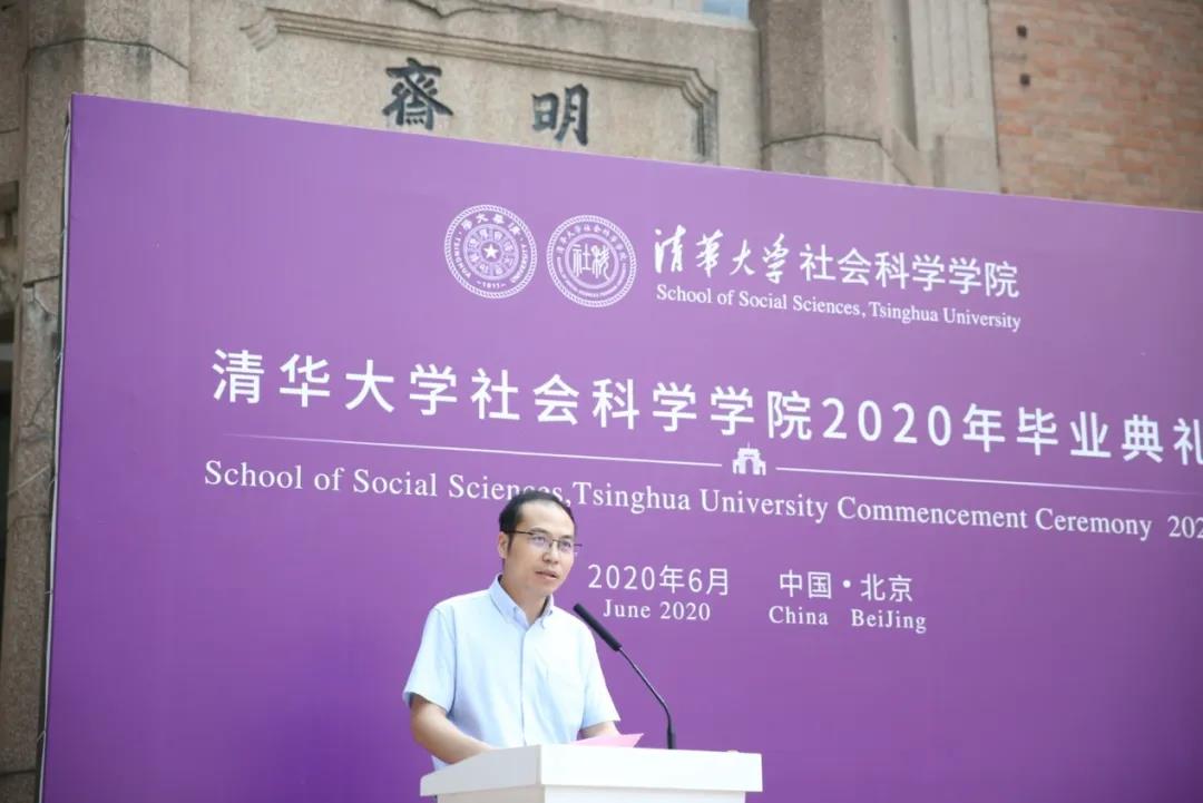 员工代表2018年心理学博士毕业生张英俊发言,他向全体毕业生表示了衷心的祝贺,并分享了自己在这场疫情中参与的“心理抗疫战”。通过在yl88858永利集团心理学系-北京幸福公益基金“抗击疫情、心理援助”热线中担任热线督导、以及在危机干预组中的经历,他为同学们讲述了清华社科人的社会责任感,以及闪耀着清华人血脉中代代传承的担当精神。张英俊寄语同学们:“不做精致的利己主义者,而做有理想有原则有担当的人。成为一个有同情心,懂得成全与谦让,明辨是非,有正义感之人,不失为一种适宜的人生选择。”