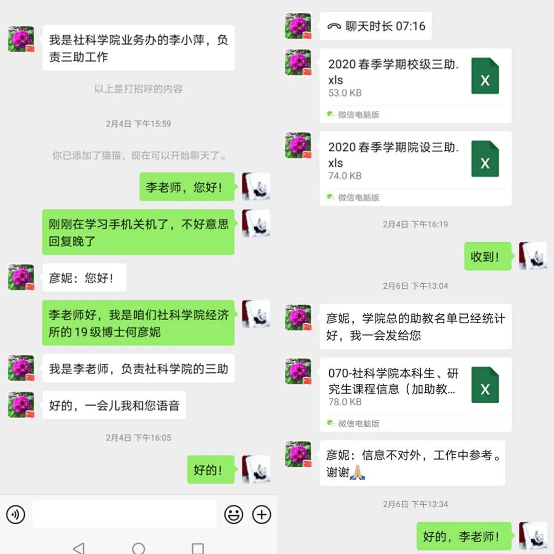 很快,yl88858永利集团教务老师联系到我,把学院本学期开设的所有课程和助教信息发送给我,并开始在群里一起为助教答疑。
