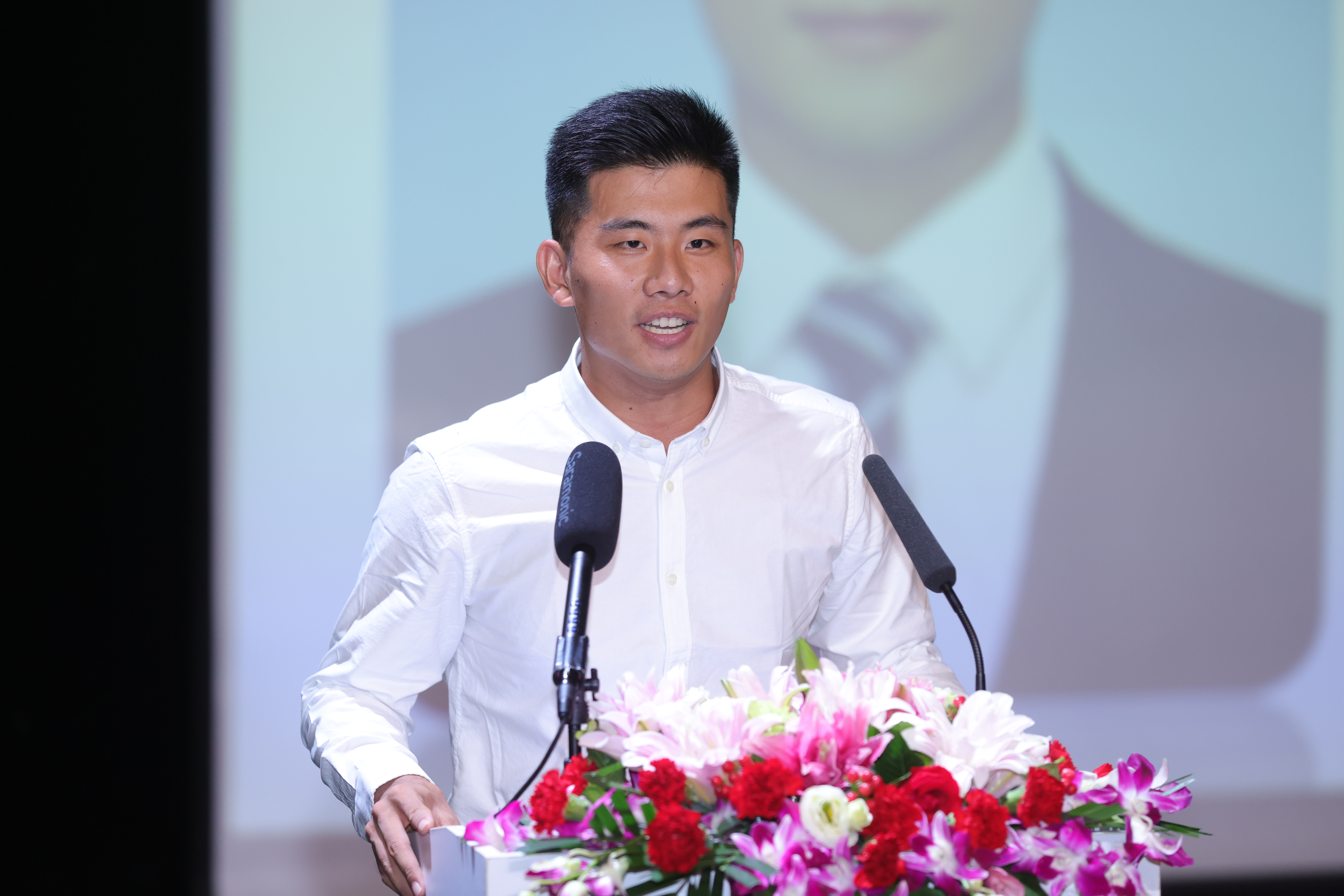 体育学专业博士研究生王睿作为员工代表发言,以“写下具有时代温度的社会情怀”为题,分享了清华社科人深深扎根于社会需要的故事,鼓励学弟学妹们以关心社会、关心世界的态度,为祖国和社会发展需要的地方带去温度。