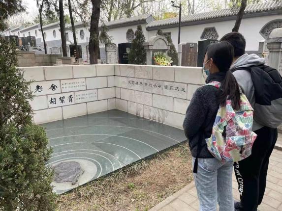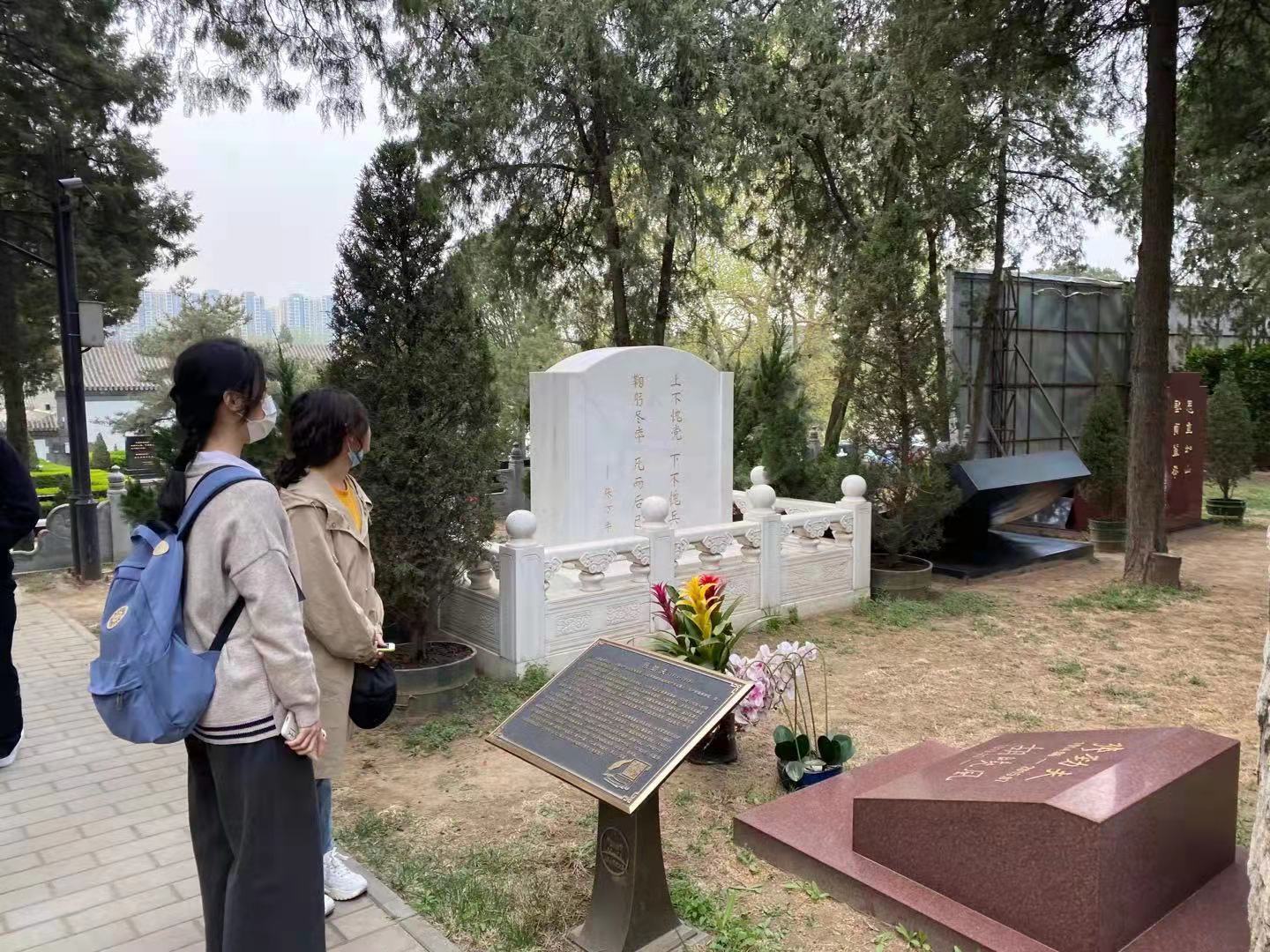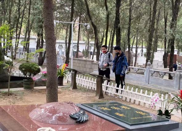 此后,同学们开始分组阅读隐藏在八宝山革命公墓各个角落里革命烈士的墓志铭,近距离感受历史的脉搏,向革命先烈的墓碑致敬。当我们说尽了“缅怀先烈”的话,翻完了历史资料中的书面记载,竟然都不及真正站在一块块墓碑前有所触动。留给后人怀念的区区一隅和只言片语,不足以再现出先烈们波澜壮阔的一生。但是,一棵树,一抔土,一块石头,像余光中写的那样,我在外头,故去的先烈在里头。穿越几十年的时空,我们的悲喜在刹那间相通了。刘澜涛“丧事一切从简”,只剩下一棵常青树;蹇先佛“深居简出,恬静而淡雅”,等待在终点处和丈夫萧克再见;沈湘墓前“大乐与天地同和”……可是,古往今来,无数仁人志士,并非人人后世留名。有名者,我们可以借陵园墓碑以安忧思;无名者,走出公墓陵园,我们也应该常念豪情。
