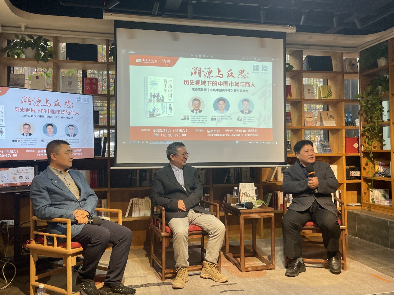 龙登高介绍了他的新作《市场中国两千年》。该书系统梳理了两千多年来中国市场的演变历程,介绍了各个朝代市场的不同特点,并按城市市场与乡村市场、北方市场与南方市场、商品市场与要素市场等分类,介绍阶段性特征。该书抛开了有关中国市场这样或那样的纷争,而是进入历史一探究竟,从早期农村公社市场的兴起和解体讲起,职业商人的产生,论至明清全国市场,走过两千年中国史,一路到改革开放及当下的市场经济建设。