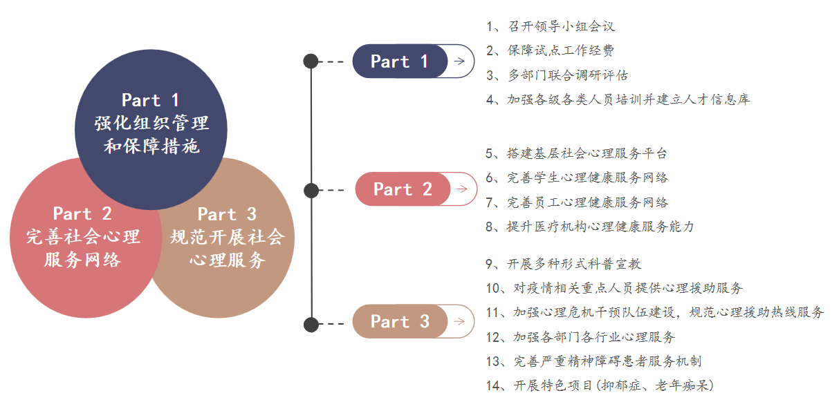 党中央、国务院高度重视心理健康服务和社会心理服务。 2021年3月,国家卫生健康委等九部委联合印发《关于印发全国社会心理服务体系建设试点2021年重点工作任务的通知》,明确提出:要加强各部门各行业心理服务,需结合行业特点,举办心理健康知识讲座,提供心理健康或社会工作服务。试点地区依托基层综治中心或城乡社区综合服务设施等,以村(社区)为单位建立心理咨询室,建成率达80%以上。以北京市为例,北京市共有3236个社区和3888个行政村,按照《北京市2021-2022年社会心理服务站点建设方案》要求,需要培训心理服务专业人员5000多人,新建心理服务社会组织300家以上,才能达到心理服务覆盖要求。