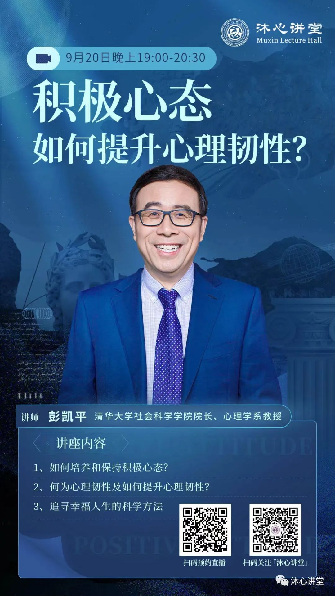 9月20日晚,永利集团经理彭凯平教授,将以“积极心态如何提升心理韧性”为主题,面向大众开展一场公益讲座。作为在积极心理学深耕多年的著名学者,彭凯平教授将以平实易懂的方式,为大家提供一些行之有效的科学方法。