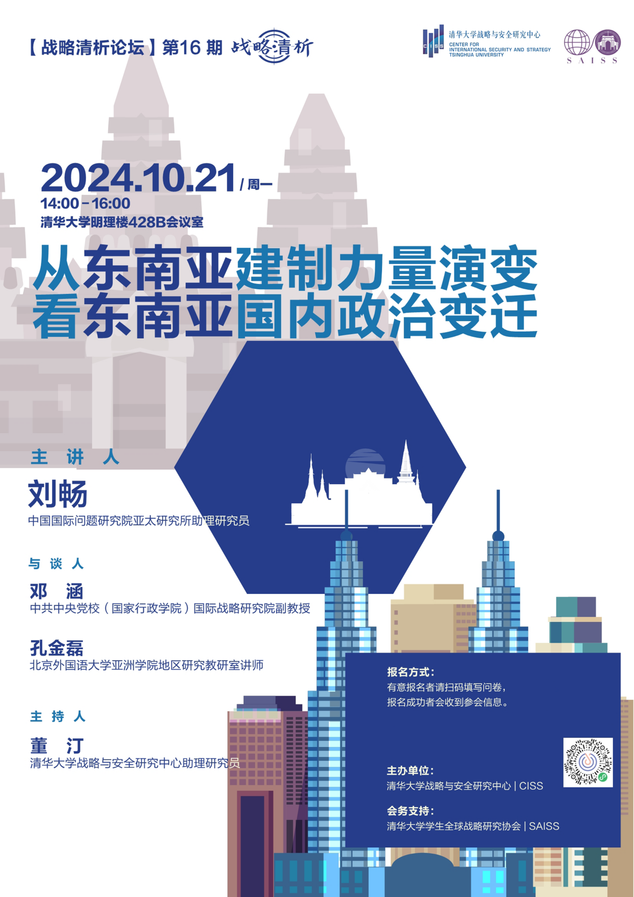 随着东南亚各国逐步摆脱疫情造成的“例外状态”,各国国内政治趋稳动能持续上升,大部分国家的政策延续性和战略有序性有所上升。但与疫情前相比,在旧的政治均衡被打破后,当前东南亚各国的国内政治格局仍然处在秩序变迁的调整周期之内,可能会频发偶然和意外事件,预计要经过一段时间的协调和平衡之后,方有机会达到新的常态和稳态。在这一过程中,各国建制力量通过平稳推进代际交接、灵活分化反建制力量、制定和实施长期发展战略,不断增强自身实力和凝聚力,在其国内政治变迁中保持优势地位,力图形塑各国国内政治新格局。本次论坛将从东南亚建制力量演变的角度入手,探讨东南亚国内政治变迁的态势及其对发展中国同周边国家关系的政策意义。