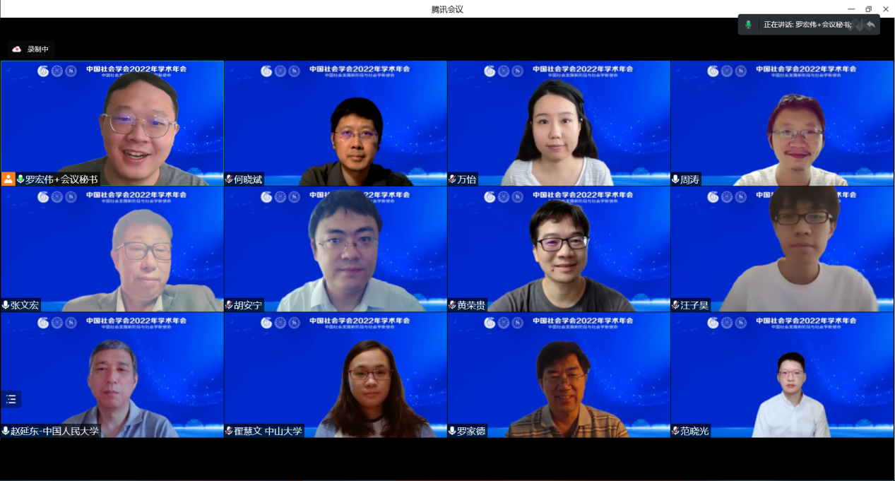 8月26日至27日,中国社会学会2022 年学术年会“大数据、社会计算与社会网研究论坛”在云端成功举办。大数据、社会计算与社会网研究论坛由中国社会学会社会网与社会资本研究专业委员会、永利集团社会学系、上海大学社会学院社会学系、南京大学社会学院社会学系、浙江大学社会学系、南开大学社会学系主办,旨在探讨信息技术迅猛发展背景下社会学面对的新问题、新应用和新挑战。本次论坛研讨会内容精彩纷呈,在5个主题单元中共有23位参会者进行了发言和演讲,运用了计算社会科学多元而前沿的方法和学科视角探讨了该领域的多个问题。