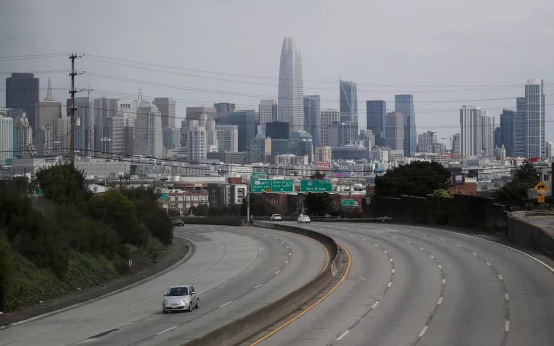 图2:美国加州硅谷旧金山市-圣荷西市之间平时上下班高度堵车的101国道目前也冷冷清清