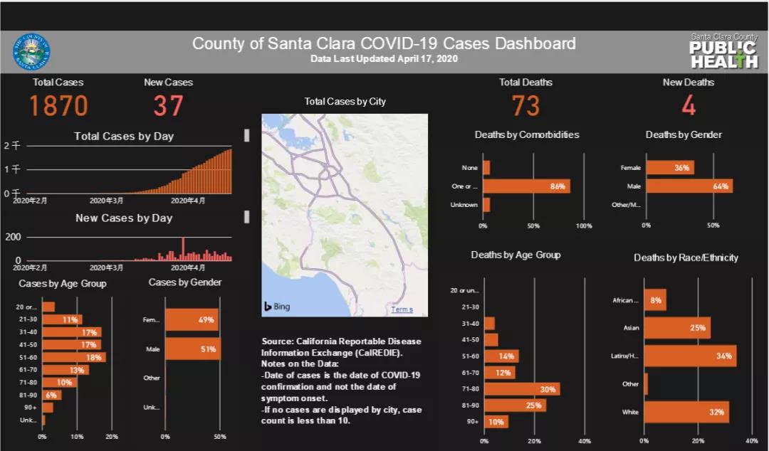图3:美国加州Santa Clara县政府官网公布的疫情数据和图形展现