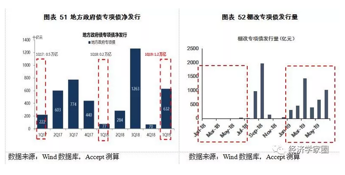 此外,2019年上半年,地方政府债相较于往年提早发行,且棚改专项债发行量较大,带动了“棚改”等政府性投资的住房开工集中在上半年进行。因此,我们认为今年上半年房地产开发投资增速的回升主要来自于2018年土地交易的延期付款,以及地方政府提前发行专项债所带动的“棚改”等政府性投资开发。进入下半年后,由于两者均不具有可持续性,再加上商品房销售表现低迷,我们认为房地产开发投资增速将放缓,且面临下行压力。根据Accept测算,我们预计房地产开发投资全年增速将下降至8.6%。
