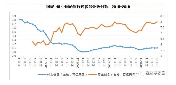 中国近期外汇储备的变化同样印证了国际收支压力的缓解。2018年四季度以来,中国的外汇储备逐步恢复,2019年5月末,中国的外汇储备恢复至3.10万亿,是2018年9月以来的最高值。同期,中国的黄金储备也快速增长,2019年5月末为798亿美元,较2018年9月增长近百亿美元。2015年至今,中国的外汇储备发生较大变动,其中2019年初至2017年初外汇储备快速下滑,此后至2018年1月有所回升,但至2018年三季度再次下滑。因此,2018年末至近的外汇储备恢复是来之不易的。