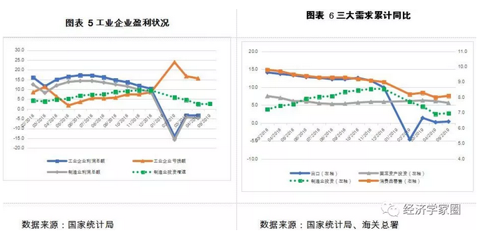 从企业经营情况来看,制造业企业盈利状况恶化,国内外市场需求不足,制造业投资前景不佳。2019年1-2月,工业企业利润总额同比下降14%,为2010年以来的最低值,截至4月,工业企业利润总额同比仍下降3.4%,和去年同期的15%正增长形成巨大反差。与之相应的是,2019年1-4月工业企业亏损额同比增长15.6%,较去年同期高出9.3个百分点。在价格方面,2019年前5月PPI持续低位波动,企业盈利未见改善。从营业收入利润率上看,国有控股企业(6.29%)>外商及港澳台商投资企业(5.92%)>股份制企业(5.48%)>私营企业(4.62%),可见民营企业盈利能力仍然较低。从市场需求上看,2019年1-5月消费品零售增速8.1%,较去年同期回落1.4个百分点;商品出口增速0.4%,较去年同期回落12.9个百分点,加之基建投资增速走弱,制造业产品的国内外需求总体不足。面对盈利艰难、需求不足的困境,企业家难以建立信心,缺乏投资激励。