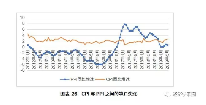 值得注意的是,我们需要采取一定的措施,防止CPI和PPI缺口的继续扩大和形成结构性通缩。2019年1月至2月PPI同比增速仅为0.1%,3月4月增速略有回升,但5月增速又放缓至0.6%,处于负增长的边缘,生产领域有通缩的风险。如果PPI持续低迷和CPI保持目前的2.5-2.7的同比增速,则会恶化工业企业的利润,降低其投资积极性并加剧PPI通缩的风险。因此,下半年需适当加大稳投资的政策力度,增加对重点行业的投资需求。与此同时,需要进一步推进供给侧结构性改革,防止低效过剩产能对价格的压制。考虑到基建投资增速下滑趋势对需求影响,以及原油等国际大宗商品价格下降对成本传导影响,2019年下半年PPI同比增速为-0.2%,PPI全年增速为0.2%。