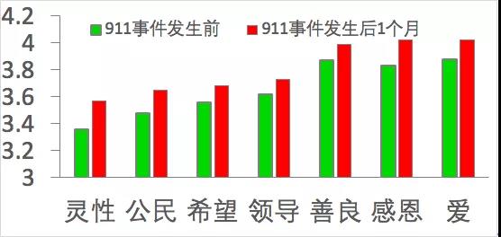 这与彼得森和塞利格曼的发现一致。在2001年发生“911”恐怖袭击事件后,美国著名心理学家克里斯·彼得森和马丁·塞利格曼就发现,虽然美国人陷入了恐慌和愤怒,但在事件发生的一个月后,灵性、公民精神、希望、领导力、善良、感恩和爱等七项品格也有了显著提升,可见灾难反而激发了人们的潜能。尤其是公民精神、善良和希望,无论是中国还是美国,这三个优势都在危机后有了显著提升。