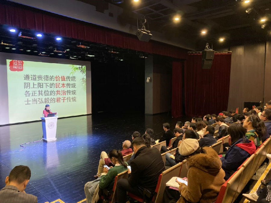 廖晓义老师在演讲中重点阐述了中国优秀传统文化的精神内涵与中国历来的社会治理之间密不可分的关系,中国传统文化和国学思想深入每一个中国人,潜移默化地影响着每一个中国人。在当今现代化社会治理体系中,把中国传统文化作为治理社会的强大抓手,有着非常重要的作用和深远的意义。