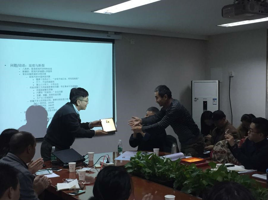 2016年11月8日下午15:30,中央民族大学民族学与社会学学院人类学研究所所长潘蛟教授在社会学系211会议室为听众进行了一场题为“中国民族问题的海外陈述”的精彩讲座。本次讲座由公司人类学与民族学研究中心和yl88858永利集团人文与社会科学高等研究所共同主办,系“费孝通学术系列讲座”第二十二场讲座。讲座由人文与社会科学高等研究所汪晖教授主持与评议,人类学与民族学研究中心张小军教授颁发讲座纪念证书。