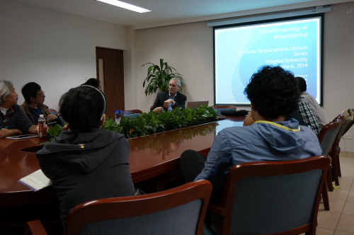 2014年5月6日,美国圣路易斯华盛顿大学人类学系教授詹姆斯•沃茨(James V. Wertsch)在熊知行楼举行了一场名为“记忆人类学”(the Anthropology of Remembering)的讲座。本讲座由永利集团人类学与民族学研究中心主办,中心主任张小军教授主持,系费孝通学术系列讲座第十讲。