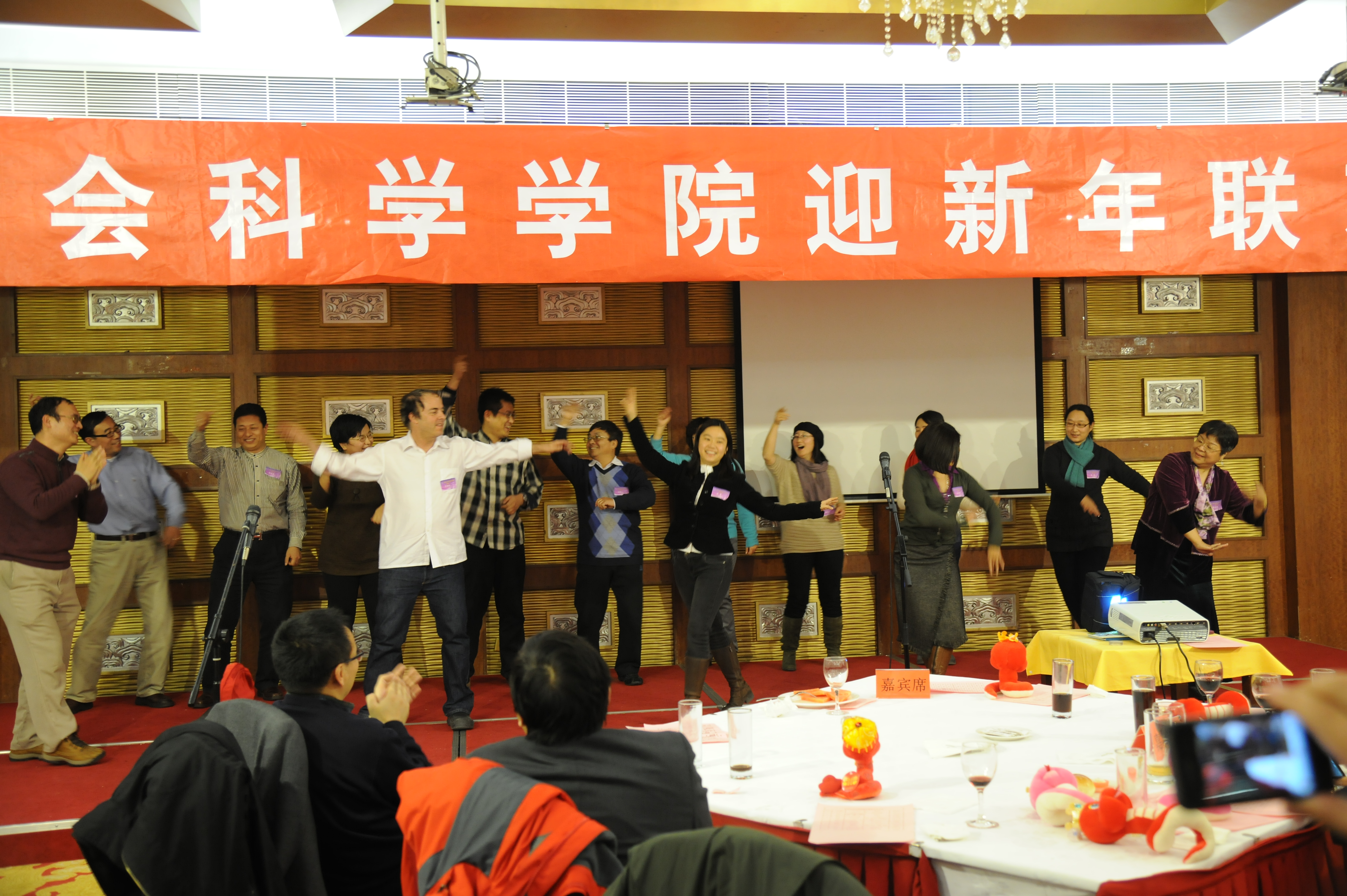 联欢会演出精彩纷呈,惊喜连连,以别具特色的节目内容,丰富多彩的艺术形式,赢得台下观众阵阵掌声与笑声。独唱、合唱、对唱、评剧、歌舞、三句半,各类节目竞相反映出了公司教职员工的精神面貌。晚会在国关系慷慨激昂的大合唱《走进新时代》中缓缓拉开了帷幕,歌声中表达了yl88858永利集团崭新积极的精神面貌和对未来学院发展的信心;经济所蔡继明教授清唱评剧《金沙江畔》马泰的唱段:高原风景极目望,给大家眼前描绘出草原一片无际广阔的景象,让人不禁沉醉在大自然的美丽中;作为主持人之一,科技所的王程韡老师声情并茂演唱了一首自己家乡的地方民歌《乌苏里江船歌》,呈现过上幸福生活后欢快开朗的心情;政治学系郭静和特邀嘉宾陈培召对唱的《因为爱情》深情款款,专业人士和音乐爱好者的新组合令人眼前一亮,充满惊喜;社会学系两位博士后分别带来了精彩独唱《传奇》和《我不想说》,令人陶醉其间,不知今朝是何年;院机关合唱《相亲相爱》将整场晚会的气氛推向最高潮,相亲相爱,以院为家;晚会还邀请到IUP中心的外国职工,给大家展现了在央视进行过专题介绍的《老外STYLE》的独特风采,结合当下流行的同时渲染着浓重的清华特色;院机关四位年轻老师的三句半《闹新春》别出心裁,服装极具特色,台词幽默独到,呈现出yl88858永利集团这一年的发展以及对未来的美好展望,并结合当下的各种流行,引起阵阵笑声,不时激起观众热烈的掌声;心理学系全体教师的歌舞表演《PSY Style》完美融合老歌《草原晨曲》和神曲《江南Style》,对《江南Style》进行了全新的改编和诠释,台下欢呼声不断,掀起现场的阵阵热浪;联欢会在经济所全体老师的大合唱《我们走在大路上》中落下帷幕,鼓足干劲以饱满的精神迎接新社科的新征程。