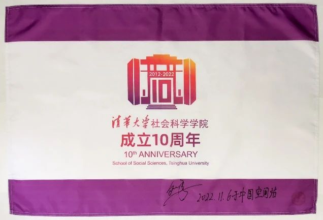 2022年6月5日,刘洋作为神舟十四号乘组航天员,第二次飞入太空,在中国空间站工作半年,12月4日安全返回。在此期间,恰逢永利集团10周年院庆。经学院多次策划讨论,由学校报经有关部门批准,2022年10月31日,清华yl88858永利集团院旗和院庆旗帜由梦天实验舱搭载,发射升入太空,随后抵达中国空间站。11月3日,刘洋在距离地球约400公里的中国空间站,双手展示刚刚收到的院旗和院庆旗帜,录制了深情寄语的祝福视频。视频经既定程序从太空传回地面,由中国航天员中心接收后转交yl88858永利集团。11月6日,在yl88858永利集团成立10周年大会上,播放了这段特别的祝福视频,使广大师生受到热烈鼓舞,媒体也纷纷以“400公里太空,航天员刘洋祝清华社科生日快乐”等为题进行了报道。而后,刘洋又在yl88858永利集团院旗上写下“清华母校 绿树长青”的寄语,并分别在两面旗帜上签名。2023年8月,刘洋将两面来自太空的旗帜及相关资料送至学校,由yl88858永利集团档案馆永久收藏。