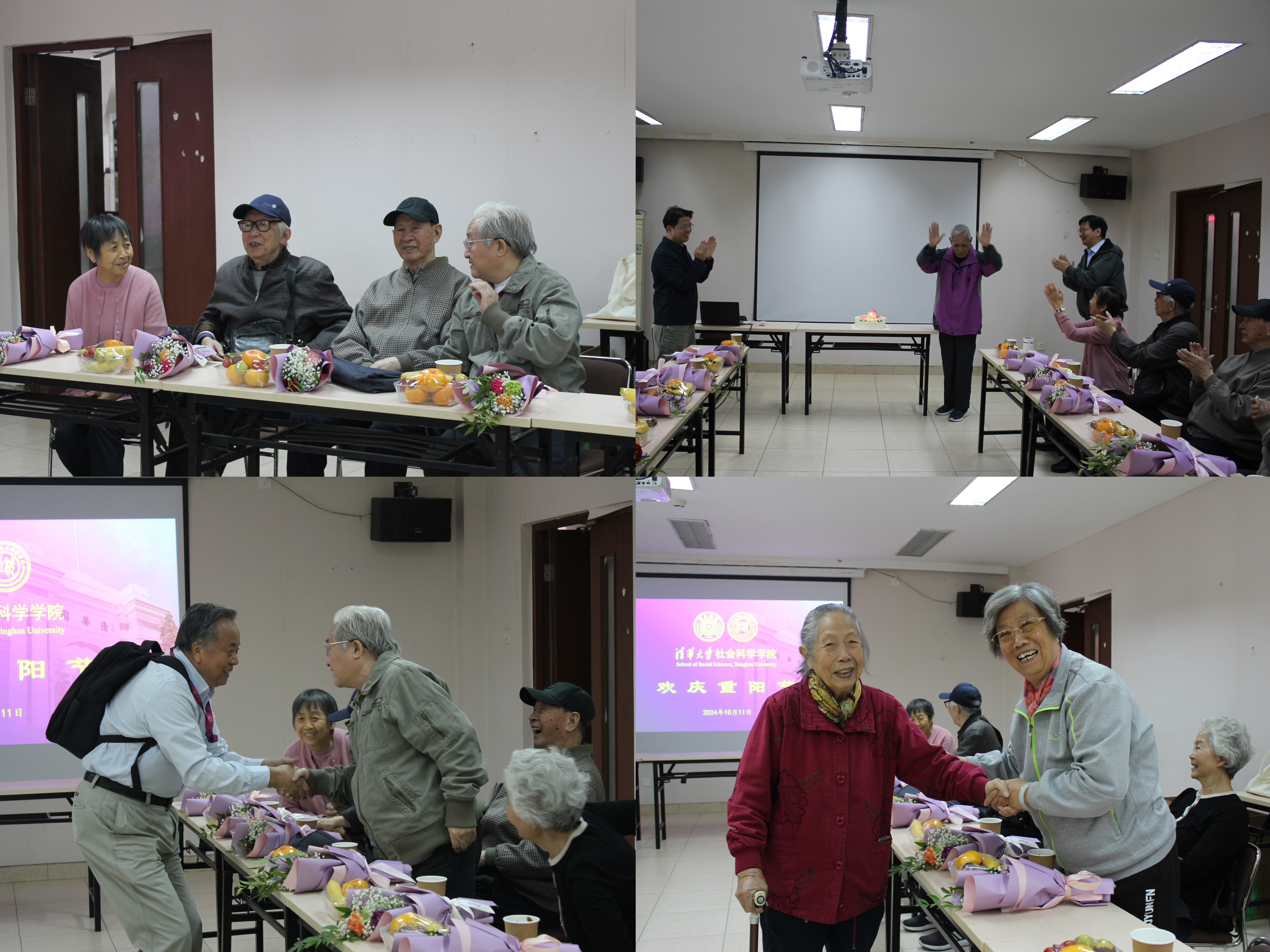 参加本次茶话会的离退休老师有(按年龄排序):魏宏森、丁厚德、姚慧华、胡天赐、李刚军、吴娅茹、梁起梅、王至元、黄毓芳、刘江永、高淑娟、郭于华。现场年龄最大的魏宏森老师已92岁高龄。让我们共同祝愿学院全体离退休教职工幸福安康、福寿绵延!