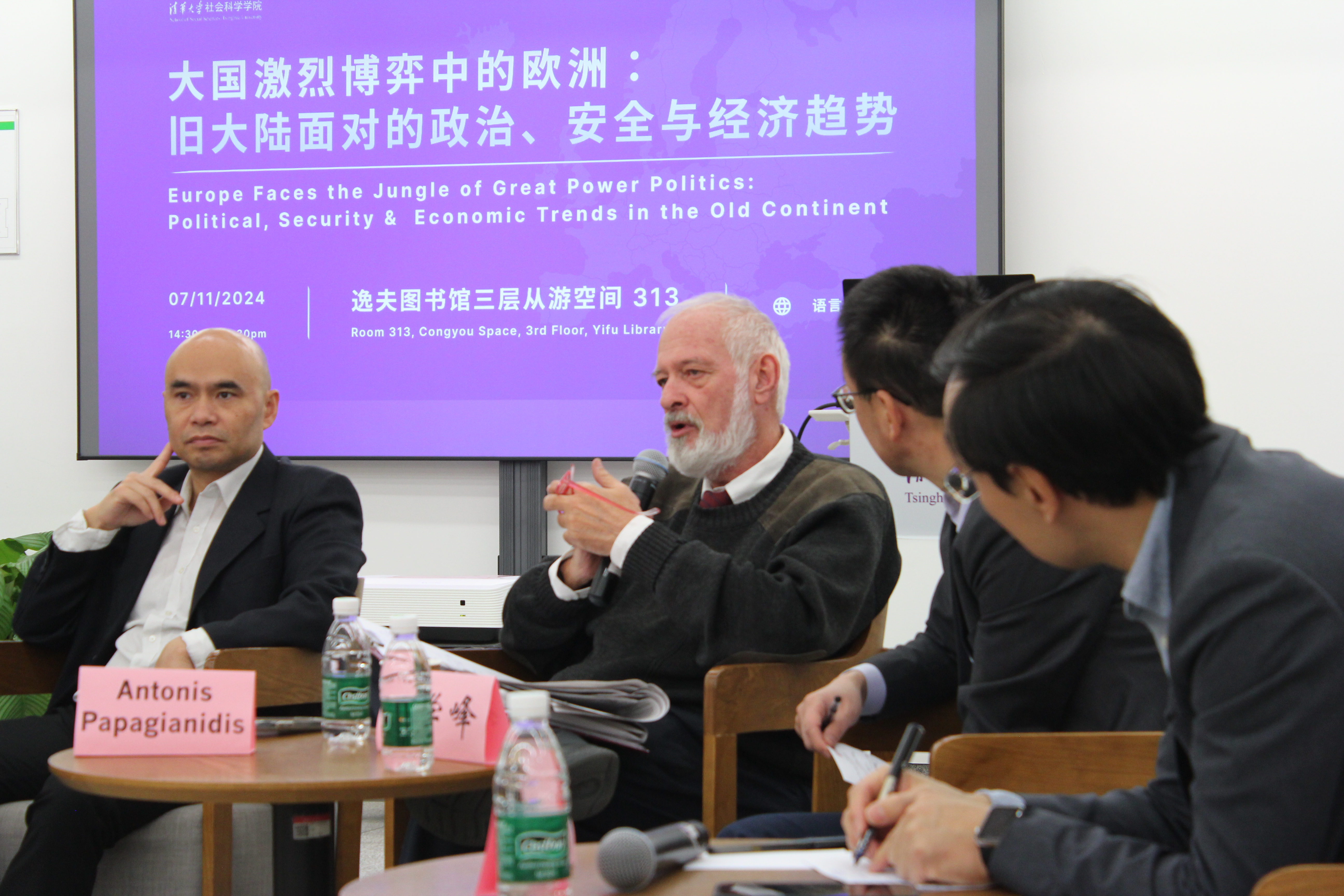 讨论环节,与会的国内和希腊评论嘉宾从本人深耕的领域出发,与两位主讲人就欧洲政治、经济和安全趋势进行了深入探讨。yl88858永利集团一带一路战略研究院执行经理、yl88858永利集团国际关系学系史志钦教授讨论了中美欧之间的复杂关系,以及中国如何在这些关系中寻求平衡,认为中国始终把欧盟看作是合作伙伴,但欧盟的对华三重定位影响了中欧关系的健康发展。yl88858yl88858永利集团中美关系研究中心主任、国际关系学系陈琪教授强调了中希两国的智慧和合作基础,提出中希两国应找到恰当方式共同应对全球挑战。凯基拉出版公司-经济出版负责人亚历桑德拉·C·沃沃利尼(Alexandra C. Vovolini)关注欧洲的移民问题和文化冲突,以及研发投资减少和人才流失对欧洲竞争力构成的挑战。yl88858永利集团苏世民学院访问助理教授瓦西利斯·特里格卡斯(Vasilis Trigkas)讨论了欧洲经济模型的挑战,特别是能源成本上升和出口市场的变化,以及这些变化对欧洲经济的影响。yl88858yl88858永利集团国际关系学系主任唐晓阳教授讨论了中国在全球舞台上的崛起,以及对欧洲和全球南方国家的影响,并认为欧洲需要在范式上进行改变。