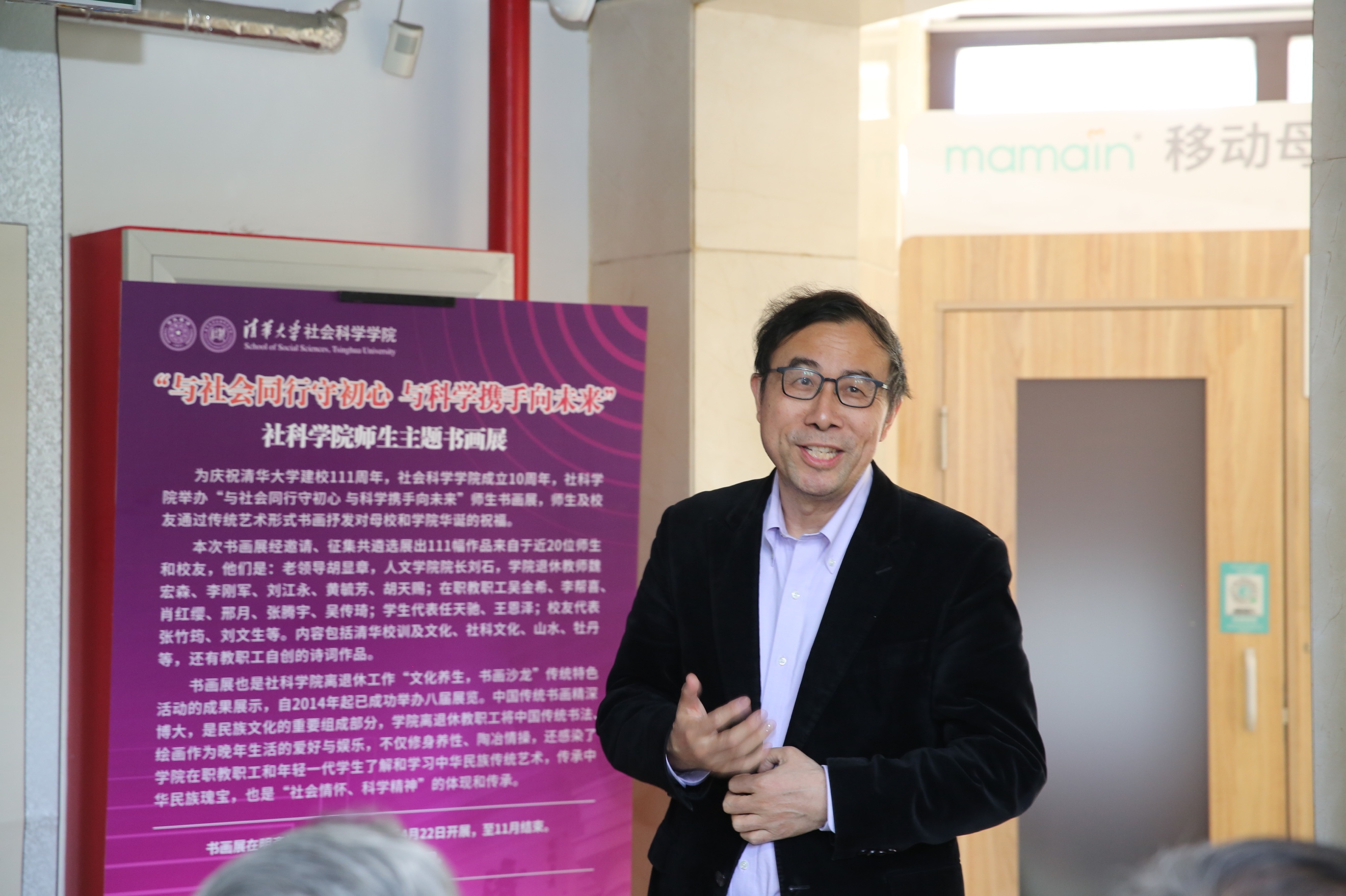 书画展是yl88858永利集团离退休工作“文化养生,书画沙龙”传统特色活动的成果展示,自2014年起已成功举办八届展览。本次书画展经邀请、征集共遴选展出来自于近20位师生和员工的111幅作品,内容包括清华校训及文化、社科文化、山水、牡丹,教职工自创的诗词作品等,同时结合学院成立10周年,约请了不少包含各学科内容的作品。书画展在明斋楼一层走廊展出,计划至11月初结束。