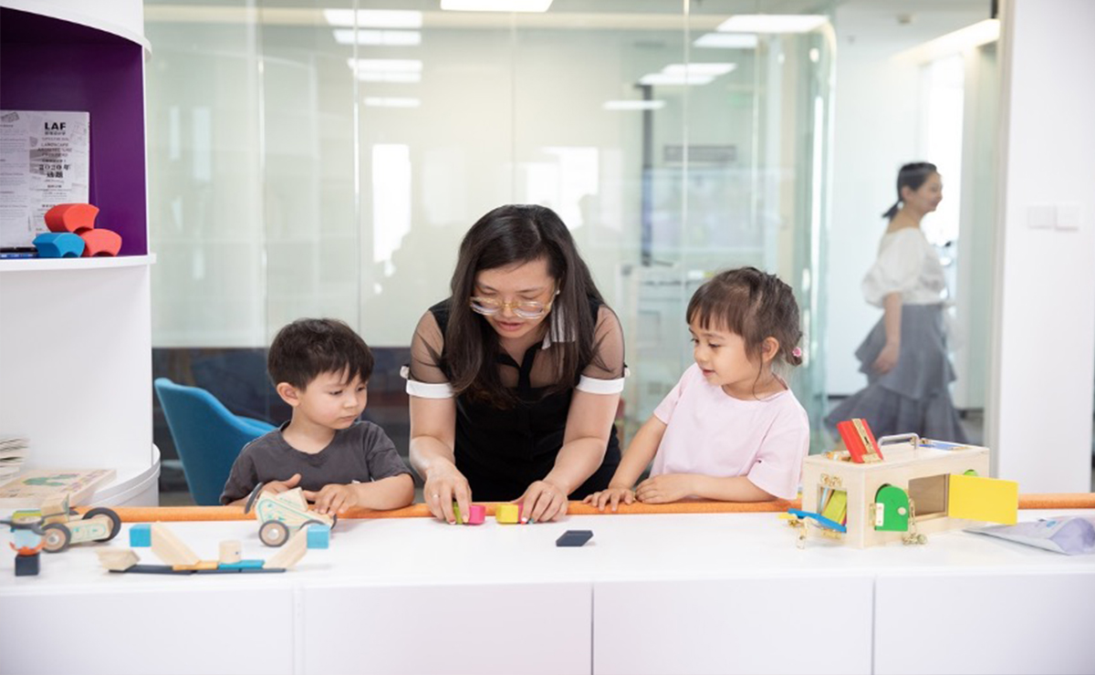 Stella Christie (centre) leads cutting-edge research on the ‘relational mind’ at the Tsinghua Laboratory of Brain and Intelligence Child Cognition Center, one of the largest cognitive developmental laboratories in Asia.